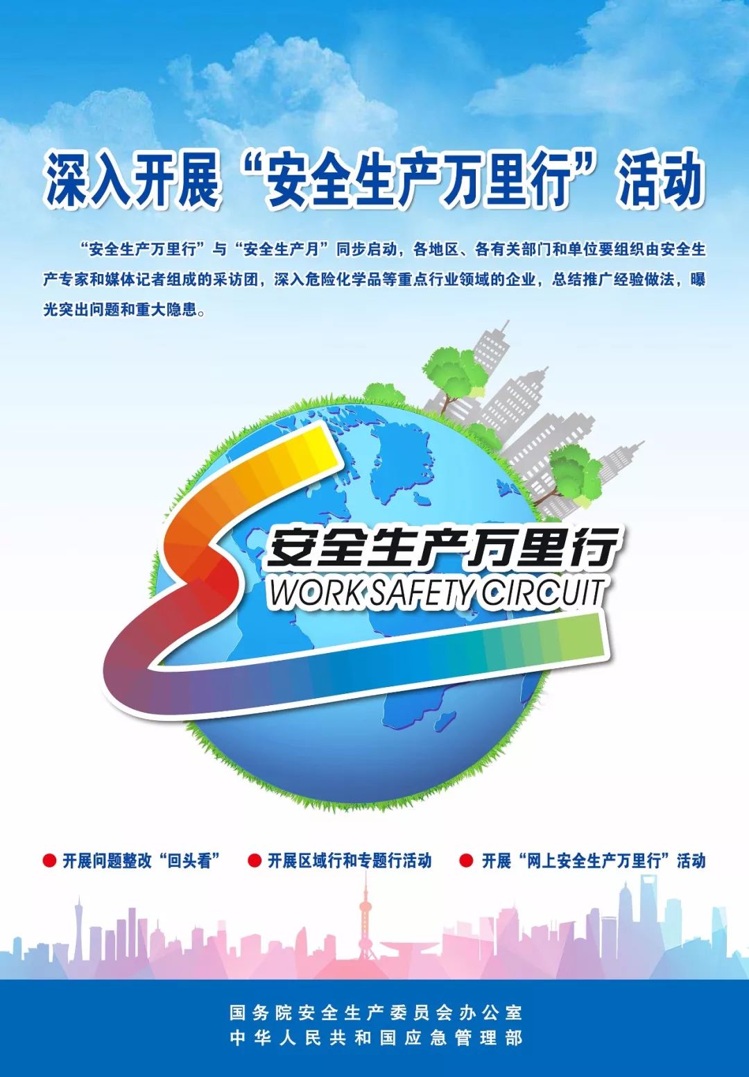 今年6月是全国第18个“安全生产月”,国务院安委会办公室将以危险化学品安全为重点,以“防风险、除隐患、遏事故”为主题,开展全国“安全生产月”和“安全生产万里行”活动。