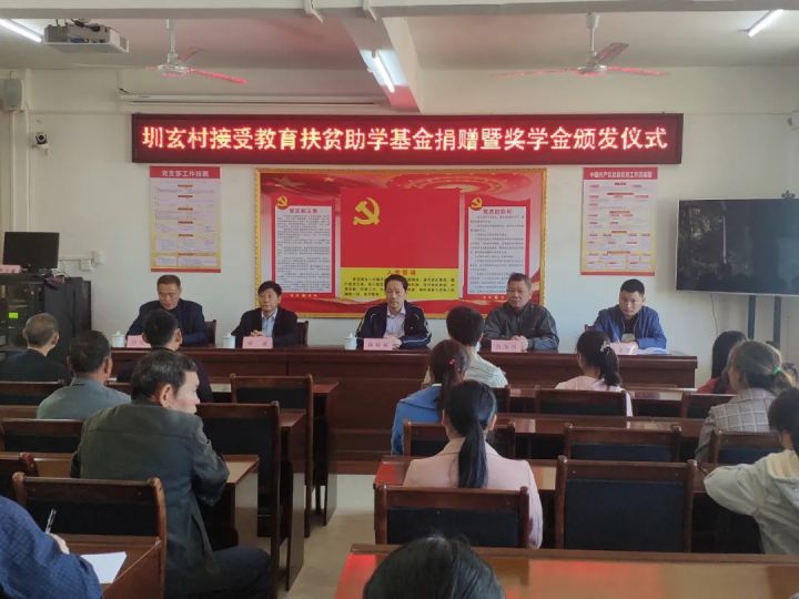 11月14日上午,在村委会会议室,举办了圳玄村接受教育扶贫助学基金捐赠暨奖学金颁发仪式。赣州发展集团通过合作企业紫荆汇富集团牵线搭桥,向深圳市紫荆天使公益基金会争取扶贫助学基金6.5万元,全部用于资助圳玄村贫困学生。杨晓斌代表紫荆天使公益基金会捐赠扶贫助学基金,村党支部书记林万鑫代表村教育助学基金会接受捐赠。扶贫干部与乡干部、村两委干部,受资助的学生及家长、群众代表参加。