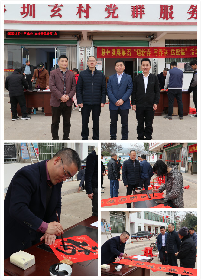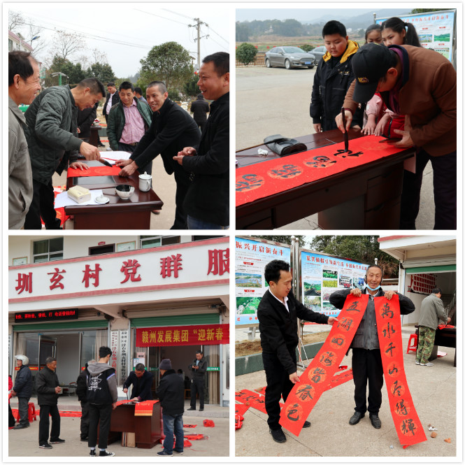 翰墨朱笺赠暖意,文化下乡送温情。2月2日,赣州发展集团组织书法小组成员连续第五年为集团定点帮扶村——南康区浮石乡圳玄村开展写春联、送春联志愿活动。赣州发展集团党委书记、董事长李贱贵在现场为村民送春联、送祝福。