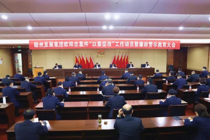 为抓好集团廉政警示教育和欧阳忠案“以案促改”工作,11月2日,赣州发展集团召开欧阳忠案件“以案促改”工作动员暨廉政警示教育大会。集团党委书记、董事长杨晓斌出席会议并讲话,集团党委副书记、总经理梁敏辉主持会议,市纪委监委相关部室负责人及市纪委监委驻市国资委纪检监察组负责人到会指导,在家的集团领导班子成员出席会议,集团全体干部职工参加会议。