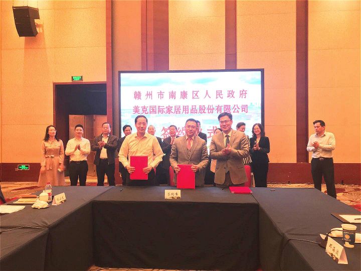 ▲图为2020年4月29日,南康区人民政府与美克家纺签约仪式。