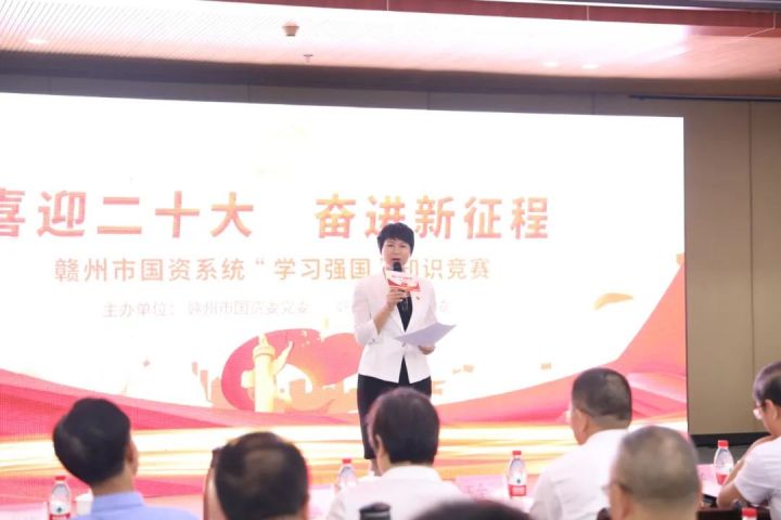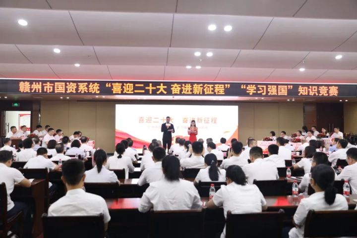 在“七一”建党节来临之际,为进一步检验学习成效、激发学习热情、巩固学习成果,6月17日上午,由市国资委党委、赣州发展集团党委主办的赣州市国资系统“喜迎二十大 奋进新征程”“学习强国”知识竞赛在赣州发展集团隆重举行。市国资委党委书记、主任吴诗东,“学习强国”学习平台用户服务中心(寻乌)负责人林佛招,市国资委领导王全生、宋英、陈孝荣、朱志林、汪广春,赣州发展集团党委书记、董事长杨晓斌和党委副书记黄强,以及市属国有企业有关领导出席活动。吴诗东致开幕辞。