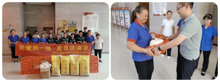 炎炎夏日送清凉,滴滴关怀沁心田。面对持续的的高温酷热,近日,赣州发展集团旗下资产公司开展夏日“送清凉”活动,为总部经济区物业保安、保洁人员和挂点路段志愿服务者送去了清凉消暑食品和物资,表达对高温下坚守岗位、辛勤工作的一线工作者的问候和敬意。