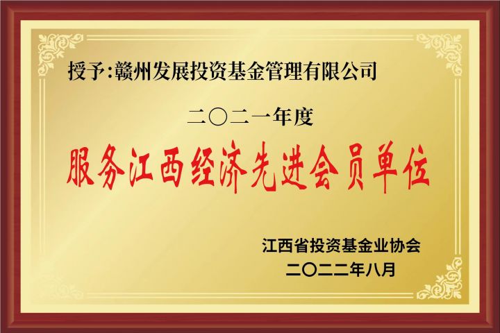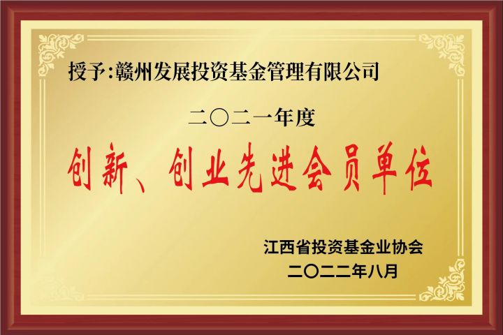 近日,赣州发展集团旗下基金公司被江西省投资基金业协会授予2021年度“服务江西经济先进会员单位”和“创新、创业先进会员单位”称号。这是基金公司连续两年获此殊荣。