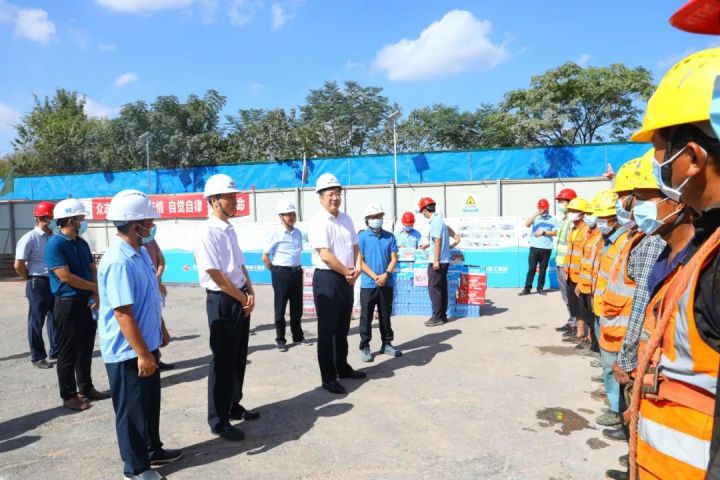 在项目现场,胡剑飞详细了解了项目基本情况、规划设计、施工进度以及“十一”期间生产安排、安全生产、疫情防控等情况,协调解决困难和问题。看到工人们正在加紧施工的繁忙景象,胡剑飞为一线施工人员送上了慰问品,向坚守一线岗位的广大劳动者致以节日的问候。他强调,要抢抓项目施工黄金期,争分夺秒赶进度,在保障项目质量和安全、疫情防控的前提下,进一步加快项目建筑步伐,确保项目如期完工。